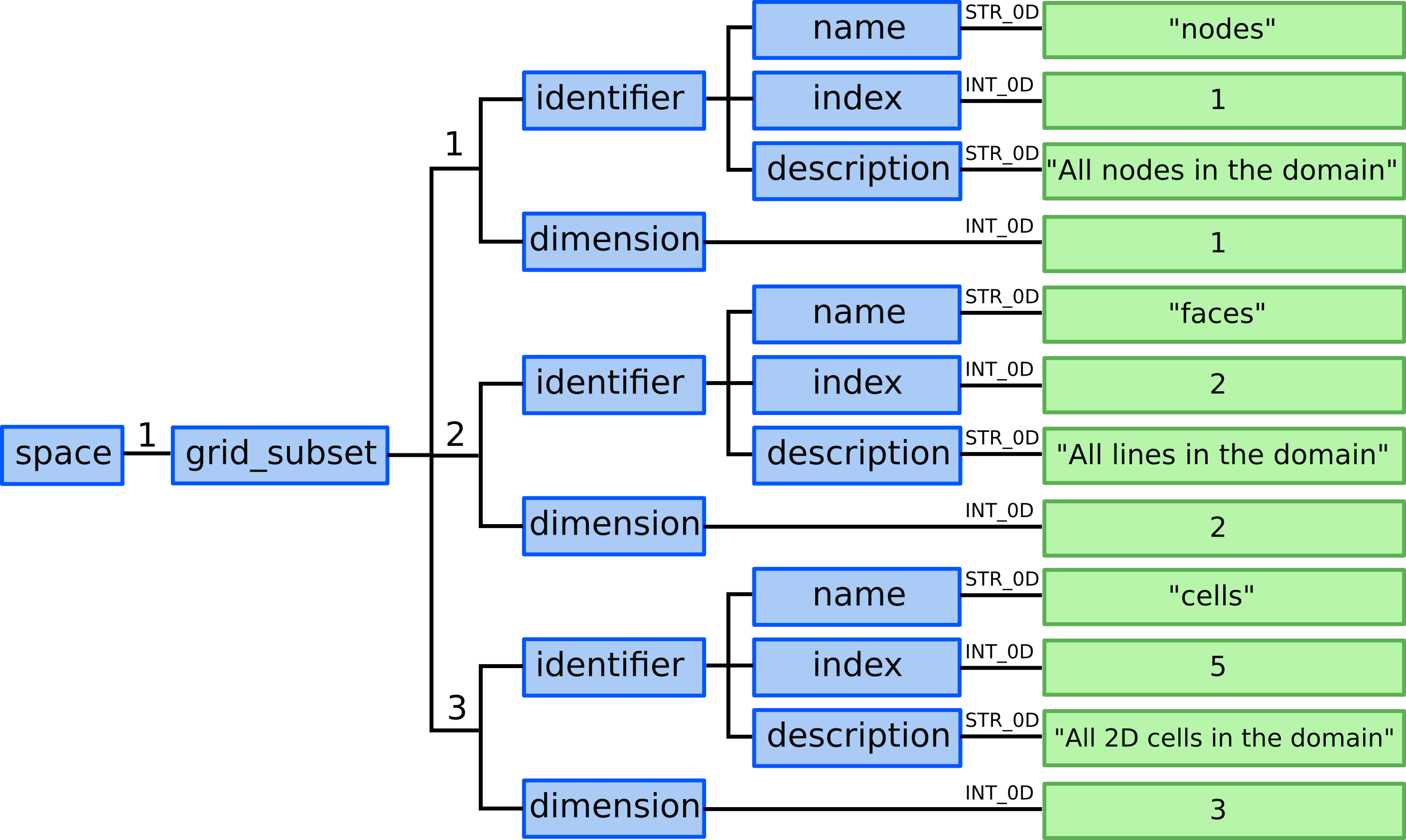 grid_ggd(1).grid_subset(2).dimension = 2grid_ggd(1).grid_subset(2).identifier.name = "faces"grid_ggd(1).grid_subset(2).identifier.index = 2grid_ggd(1).grid_subset(2).identifier.description = "All lines in the domain"
