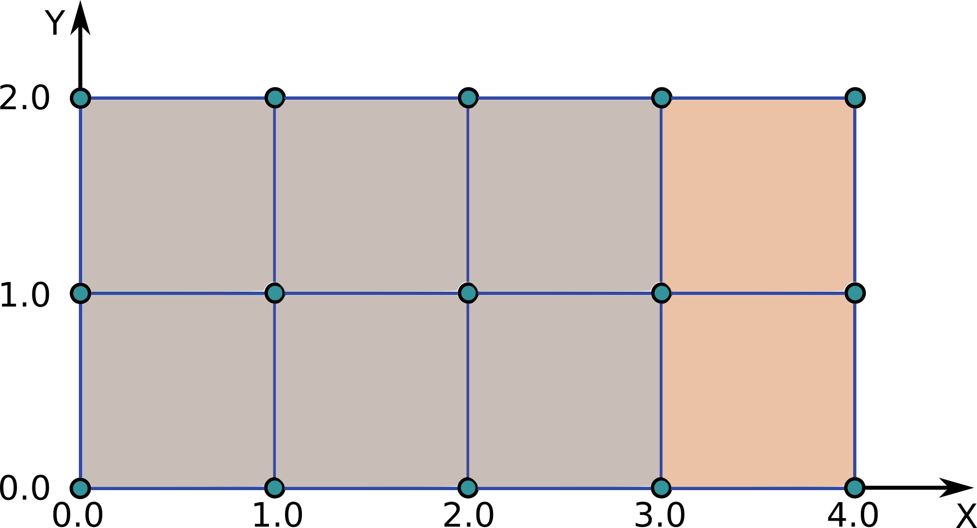 Grid consisting of consisting of 5 points in X direction, and 3 points in Y direction.¶
